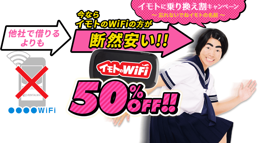本ページからのお申込みで、海外用Wi-Fiレンタル料金が50%OFFとなります。