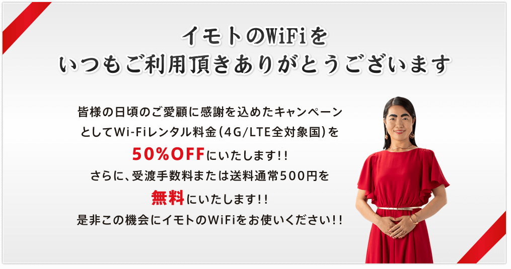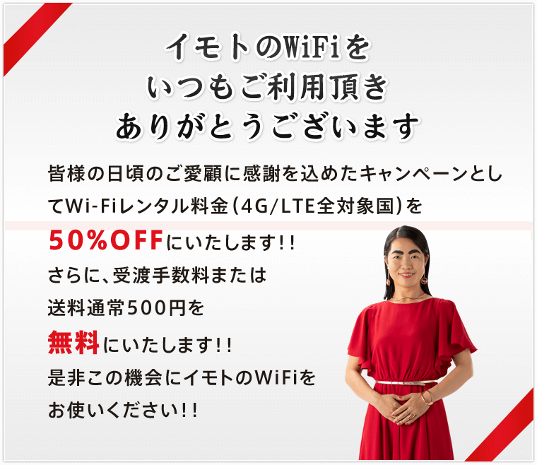 4G/LTE WiFiプランの一日あたりの定価から50%OFF +受渡手数料・送料(500円)無料