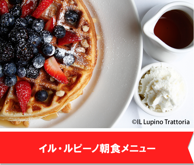 ロイヤル・ハワイアン・センターの1階にある本格イタリアンレストラン「イル・ルピーノ」での朝食A メニュー予約プランです。差額のお支払いでランチ・ディナーへのアップグレードができます。