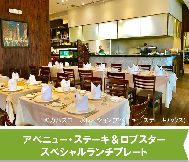 人気レストラン「アベニュー ステーキ&ロブスター」での、スペシャルランチプレートのプランです。差額のお支払いでディナーへのアップグレードができます。