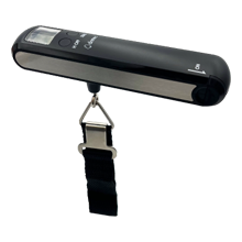 飛行機へ搭乗する際のスーツケースや荷物などの「重さの不安」をこれ1台で解決。吊り下げるだけで最大50kgまで簡単に計量できるラゲッジスケールです。80cmメジャー内蔵。