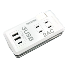 3台までの電気製品を同時に使える電源タップ(対応電圧:100V~250V)です。プラグ形状が違う海外製の電気製品にも使用可能