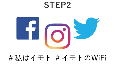 当社主催の「SHIBUYA109 Imosta spot」イベントにて撮影した写真にハッシュタグ「#イモトのWiFi」と「#私はイモト」を付けてSNS(Facebook、instagram、Twitter)に投稿。