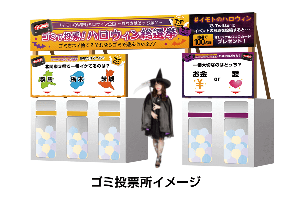 STEP 2:ハロウィン当日に『ゴミで投票!ハロウィン総選挙』のイベントの模様を指定のハッシュタグと共にツイート。(指定のハッシュタグ:#イモトのハロウィン)